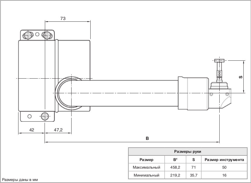 Быстрое срабатывание привода обеспечивает выполнение наладки инструмента и проверку его состояния прямо в процессе обработки, без необходимости вмешательства оператора.Время вывода руки в рабочее положение и ее фиксации по команде управляющей программы составляет не более 2 секунд.