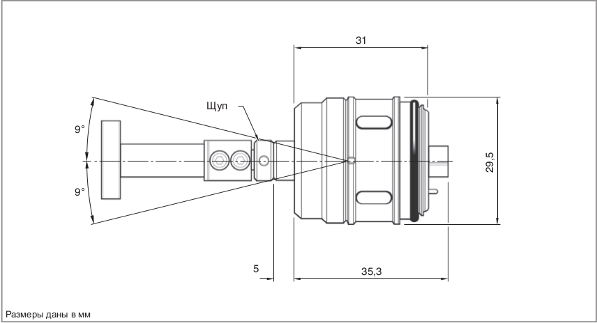 - Защита датчика ломким предохранителем щупа.